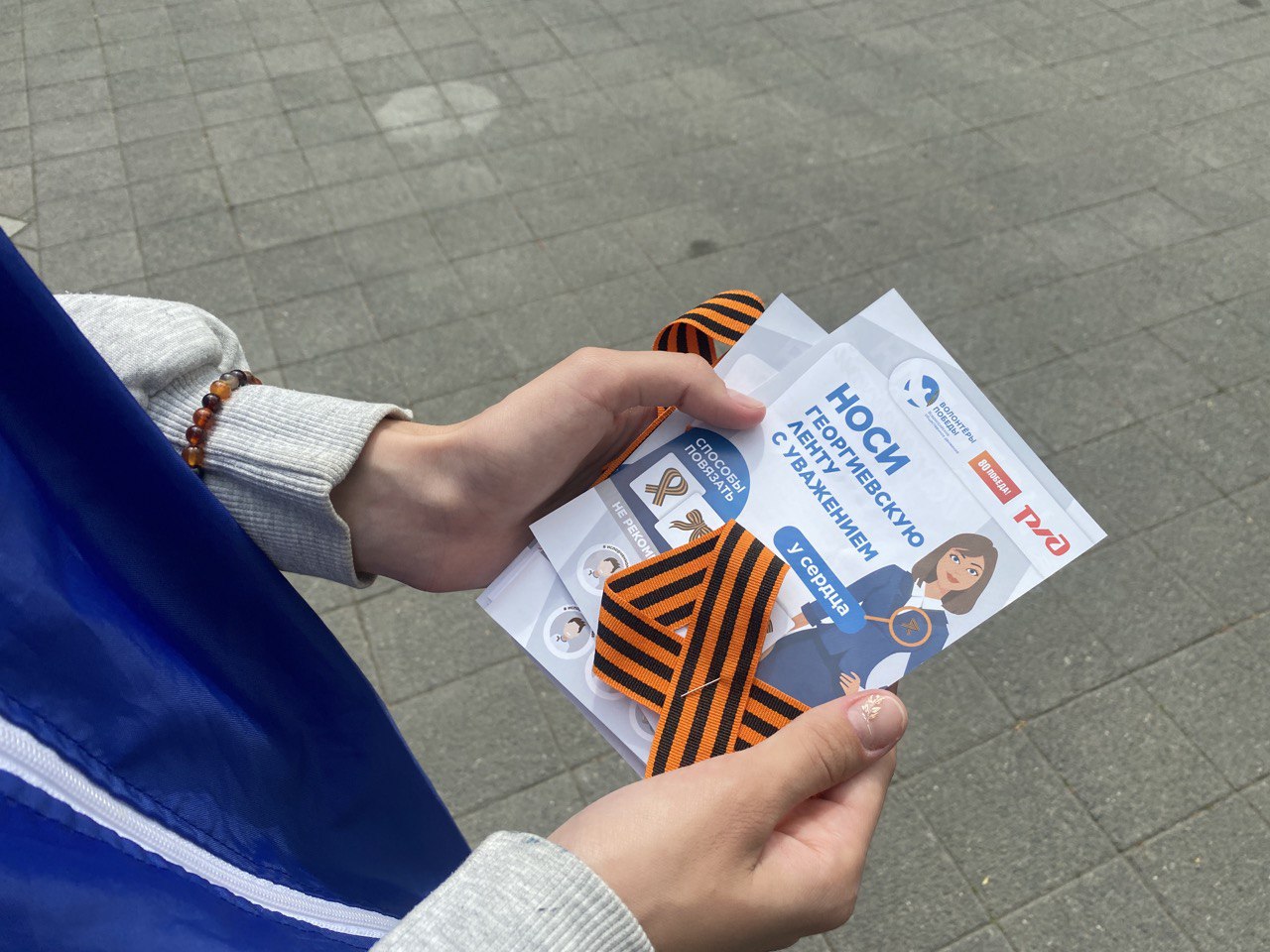 С 7 по 9 мая Георгиевские ленты можно будет получить на площади перед Выставочным залом Боевой Славы. Волонтеры также расскажут об истории этого символа и о том, как правильно его носить. Акция будет проходить с 10:00 до 18:00.