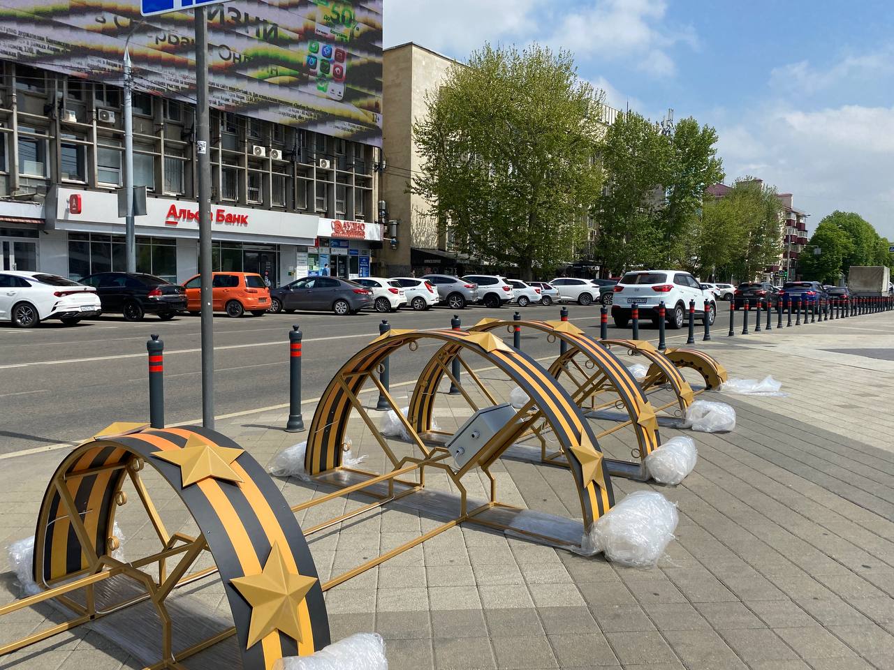 К установке праздничной инсталляции к 80-летию Победы приступили в Краснодаре