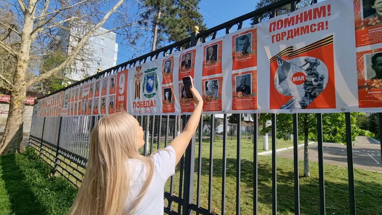 Около 600 портретов фронтовиков ВОВ разместили на школьном баннере в Краснодаре
